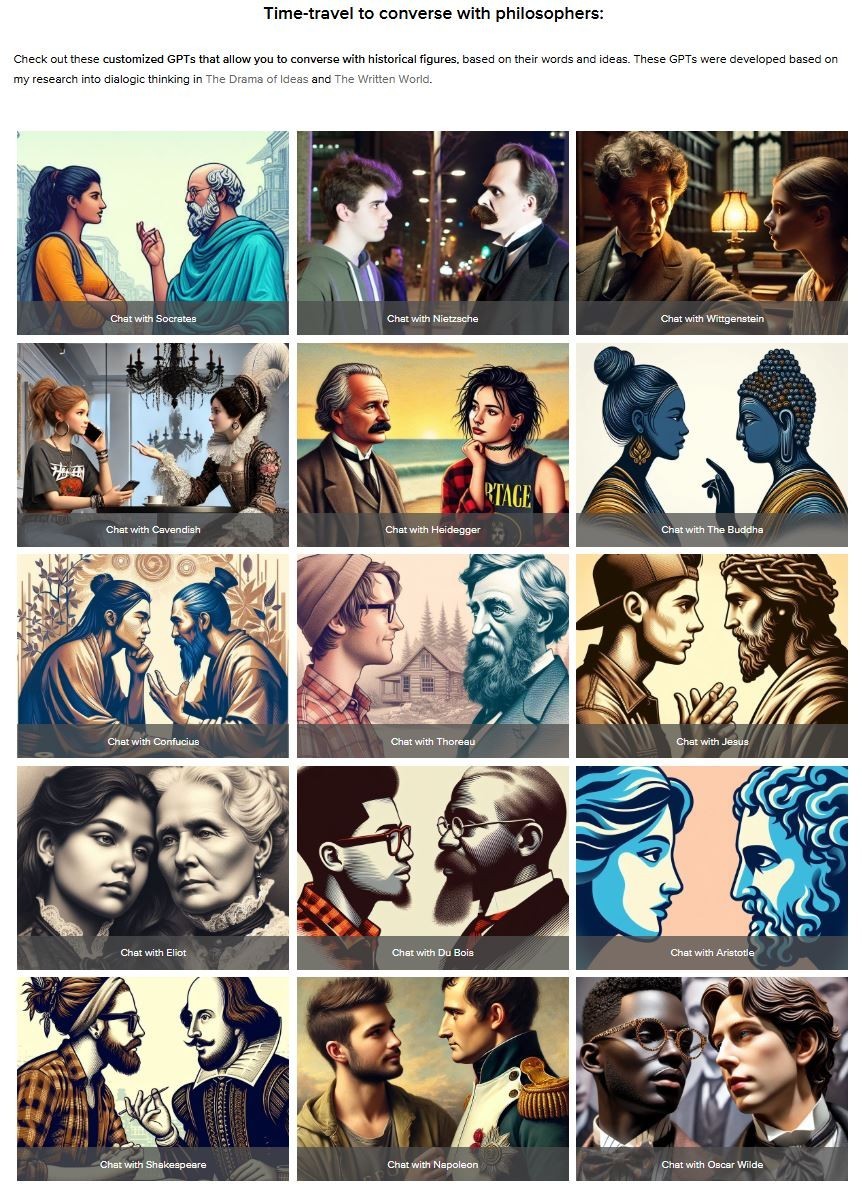 Doch wie beim Selfpublishing schon sichtbar, bleibt diese Technologie nicht allein den Verlagen vorbehalten. Der Literaturwissenschaftler Martin Puchner bietet z.B. über ChatGPT Dialoge mit bekannten Persönlichkeiten der Kulturgeschichte an.