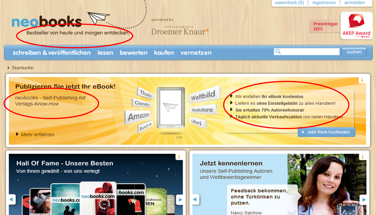 Oder wie  bei neobooks: “Selfpublishing mit Verlags-Know-How”.