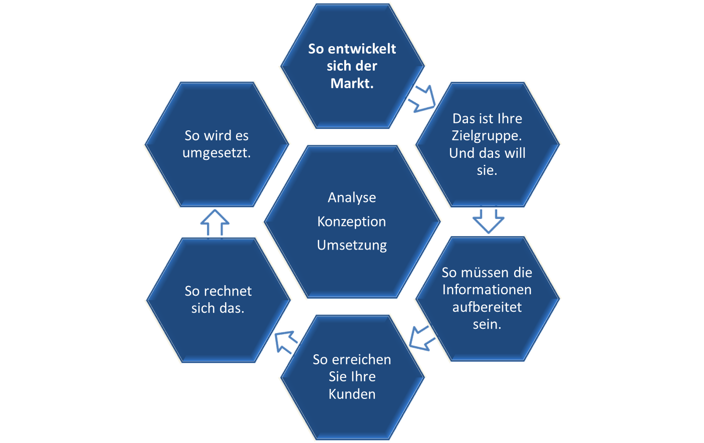 Zur Erinnerung verweisen wir auf unsere six smart steps (Archiv), der Grundlage für jedes Vorgehen bei der Entwicklung von digitalen Produkten und Services.