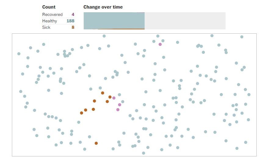 Dieser Artikel der Washington Post zeigt durch animierte Grafiken einfach und eindrucksvoll, wie sich ein Virus verbreitet. Er wurde schon früh veröffentlicht und gehört zu den meistgeklickten Artikeln der Zeitung. Er ist ein gutes Beispiel für die kluge Verknüpfung von Datenanalyse und verantwortungsvoller Interpretation: Er zeigt, dass Zahlen hilfreich sind für Hochrechnungen, aber weder die Gegenwart vollständig abbilden, noch die Zukunft vorhersagen können. Aber nicht nur die traditionellen Medien liefern „Qualitätsjournalismus“: Dieser Beitrag von Tomas Pueyo wurde am 10. März auf medium veröffentlicht und erreichte ein Millionenpublikum, so wie auch dieser Artikel von Andreas Tertilt und Andrea Wille auf Quarks, um nur zwei Beispiele zu nennen.