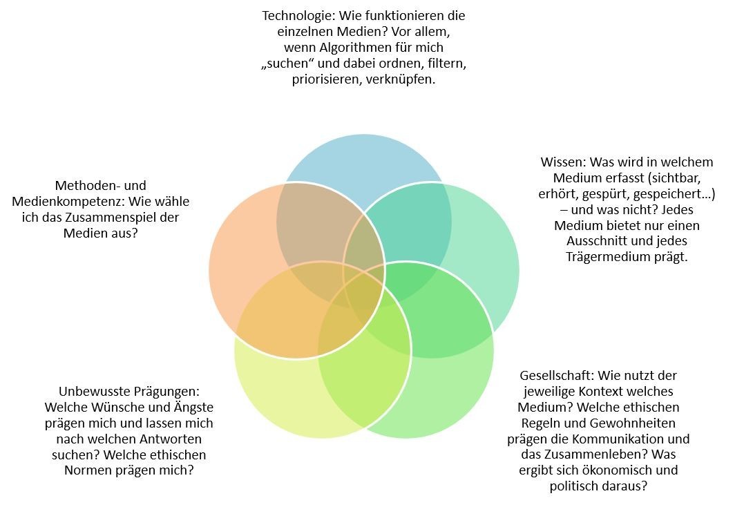 Gute Erfahrungen machen wir hier mit dem Modell der limbic map, das die Bedürfnisstruktur auf der Basis hormoneller Prägungen untersucht. Das hilft, die emotionalen Prägungen einzuschätzen von scheinbar logischen Aussagen (siehe hier unser Hinweis auf das Modell im Rahmen einer Untersuchung des Ocean-Modells und cambridge analytica beim Streuen von fake news im Wahlkampf oder hier im Zusammenhang mit KI und Metadaten).Medienkompetenz heißt, sich mit den ethischen Fragen durch KI, nach der eigenen Identität und der Kommunikation zu befassen