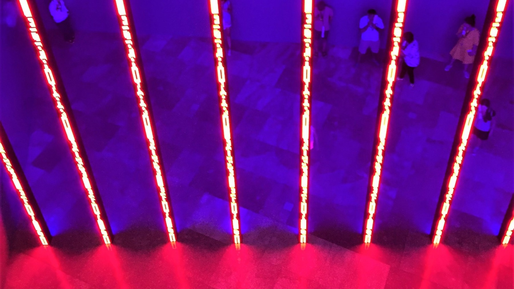 Das Thema ist allgegenwärtig, von der Diskussion um die Geschenkaktion von Märchenbücher über Amazon bis zur Gestaltung neuer Lehrpläne angesichts der Digitalisierung an den Schulen (wir berichteten über die Anforderungen an Lesekompetenzen von Schülern). Gerhard Lauer weist in seinen Interviews, auf den Buchtagen und in seinen Veröffentlichungen darauf hin, dass Lesen nicht gleich Lesen ist und der Kontext und die Haltung entscheidende Faktoren sind, Kathrin Passig skizziert die Veränderungen des Schreibens im digitalen Raum und Hans-Georg Häusel verweist darauf, dass digitale Geräte “den Affen in uns hervorlocken”: Bisher sind wir so konditioniert, dass wir ständig etwas Neues entdecken wollen und der “novelty bias” zuschlägt – Neues schlägt Bekanntes. Offen ist, ob wir in Zukunft digitale Geräte auch zu nutzen lernen, ohne dauernd unkonzentriert in die Neuigkeitsfalle zu tappen. Beim Fernsehen ist das so passiert. Streamingdienste und der second screen befriedigen das Bedürfnis nach Neuem, das Fernsehen, lange Zeit das prägende Suchtmedium für Bilderjunkies, wird verdrängt. Und E-Reader wurden zu Beginn von “Experten” der digitalen Szene belächelt, weil sie so weit hinter den Möglichkeiten digitaler Geräte zurückbleiben. Mittlerweile haben sie ihre Nische besetzt, in der Zusatznutzen wie schnelle Bestellmöglichkeit, Wörterbücher, Karteikarten oder Notizfunktionen auch gut einsetzbar sind. Das heißt wir haben allein in den letzten zehn Jahren eine Veränderung von Lesegewohnheiten erlebt, die es uns schwer machen, DAS Digitale zu erfassen und Rückschlüsse zu ziehen. Die Nutzung des Digitalen verändert sich ständig. (Bild: Installation von Jenny Holzer, Guggenheim Bilbao)