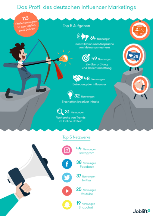 Der Traum aller Produktmanager ist ein viraler Hit. War früher noch ein Aufreger von Reich-Ranicki eine Garantie für Absätze bei Büchern, ist das jetzt schwerer und leichter geworden. Heute kann auch irgendjemand etwas ins Netz posten und mit etwas Glück kaufen dann Milliarden Kunden wie elektrisiert das Produkt. Influencer Marketer wollen diesen Prozess professionalisieren. Dabei verschwinden die klassischen Grenzen zwischen Marketing, PR und Produktmanagement. Denn die Ansprache dieser Multiplikatoren erfordert das Zusammenspiel mehrerer Fähigkeiten, die oft verteilt vorliegen. Dass dieser Job immer bedeutender wird, zeigt eine Analyse von Joblift, einer Plattform zur Jobsuche, die als “Metajobsuchmaschine” und Aggregator den Kunden zu den Jobbörsen und den Angeboten der Firmen lotst. Es bestätigt den Trend, den wir vor knapp zwei Jahren mit einer Studie der Macromedia-Hochschule München über Influencer (Archiv) zum ersten Mal aufgegriffen hatten.