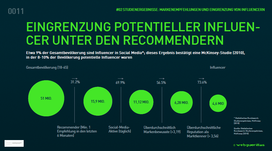 Man geht von etwa 9% Influencern in der Bevölkerung (Alter 18-65) aus, was in etwa 4,6 Millionen Personen in Deutschland entspricht. (Quelle/Copyright: Macromedia/webguerillas)