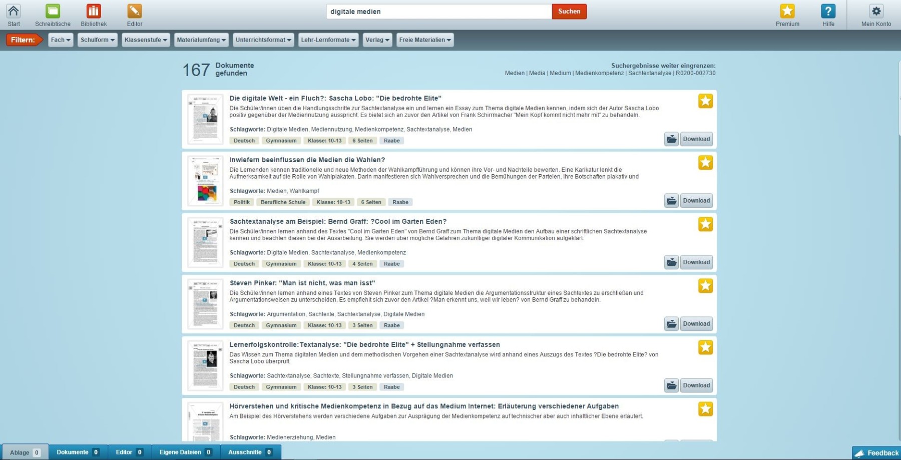 meinUnterricht.de wendet sich vorwiegend an junge Lehrer, die ihr Material zusammenstellen müssen. Sie erhalten Material, können selber Dateien einspielen und verwalten und haben mobil Zugang zu den Inhalten. Die Herausforderung ist hier wie bei all den Plattformkonzepten: Wie bekomme ich genügend guten Inhalt, so dass sich mein Kunde bei mir einloggt und nicht alles über die Plattformen der großen Ökosysteme verwaltet? Einzigartige Inhalte und zugleich der Zugang zu vielen anderen Quellen muss die Losung sein.