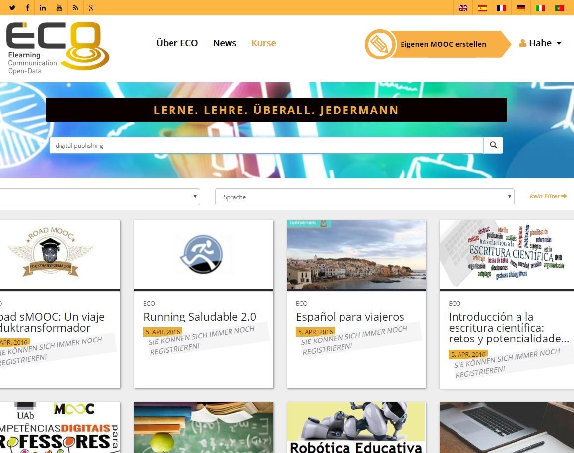 Ein anderer Ansatz wird von Eco verfolgt. Auch dieses Portal unterstützt Lehrer, aber indem es sie in die Lage versetzt, gleich selber MOOCs zu erstellen.