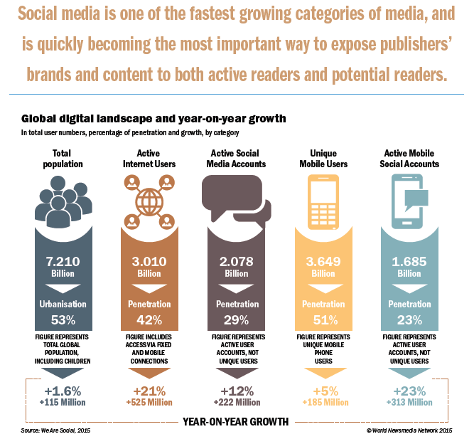 Der Social Media Trends Report von Fipp.com für 2015 zeigt eindrucksvoll, dass die sozialen Netzwerke das Verlagsgeschäft weiter prägen werden. Das bestätigt vorangegangene Studien (Archiv) und die aktuellen Entwicklungen, von Periskope über Meerkat und Facebook Instant Articles belegen das. Wenig überraschend sind soziale Netzwerke allein aufgrund ihres Wachstums für Verlage von großer Bedeutung.